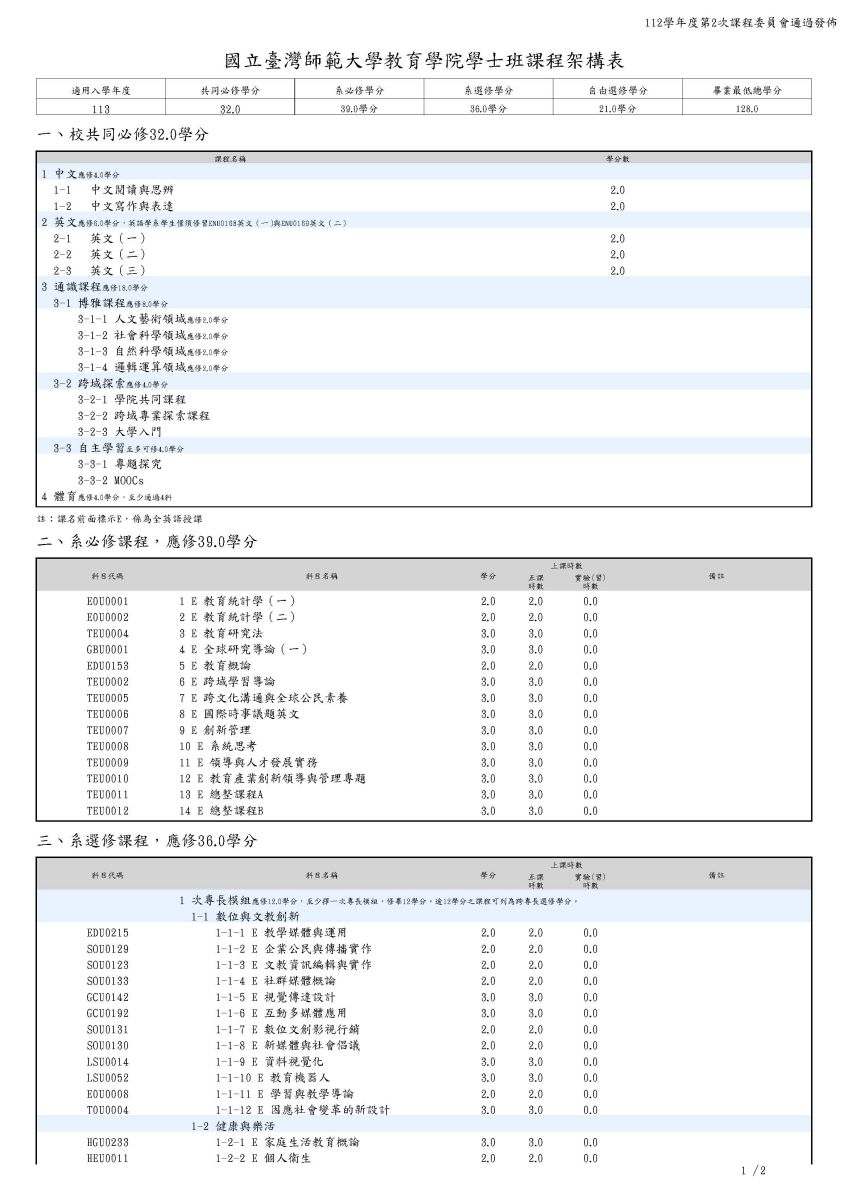 108學年度入學適用 109與110學年度入學生適用 111與112學年度入學生適用 113學年度入學適用 114學年度入學適用